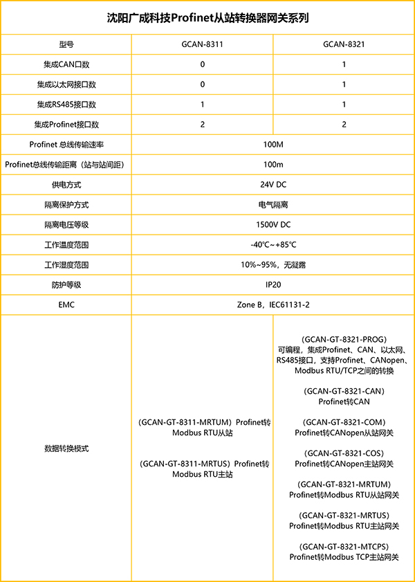 GCAN-8311組合式Profinet從站網關轉換器的主要設備參數包括: