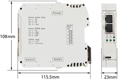 GCAN-GT-8311-MRTUM模塊集成1路24V DC電源接口、2個標準Profinet接口、1個標準以太網接口、1路標準RS485接口,GCAN-GT-8311-MRTUM模塊接線端子如圖所示。