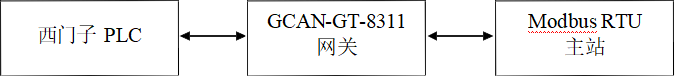 GCAN-GT-8311-MRTUS,西門子PLC可以通過8311網關,與Modbus RTU主站進行通訊;西門子PLC的Profinet接口連接8311的Profinet接口,8311的RS485接口連接Modbus RTU主站的RS485接口。