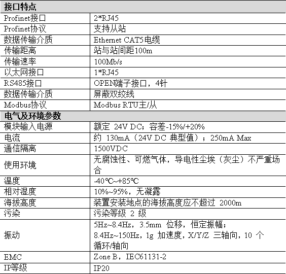 ● Profinet總線傳輸速率:100Mbps;