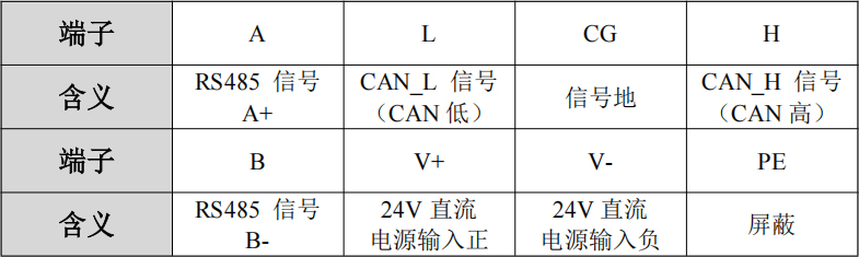 表2.1 GCAN-GT-8321S電源+通信接口定義