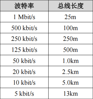 請注意:CAN-bus電纜可以使用普通雙絞線、屏蔽雙絞線。理論最大通信距離主要取決于總線波特率,最大總線長度和波特率關(guān)系詳見表10.1。若通訊距離超過1km,應(yīng)保證線的截面積大于Φ1.0mm2,具體規(guī)格應(yīng)根據(jù)距離而定,常規(guī)是隨距離的加長而適當(dāng)加大。