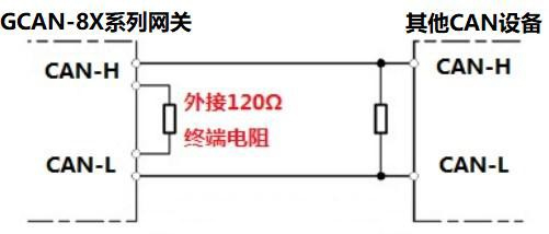 GCAN-GT-8321S接入CAN總線時(shí)僅需要將CAN_H連CAN_H,CAN_L連CAN_L,并保證CAN總線終端電阻為60Ω左右即可建立通信。