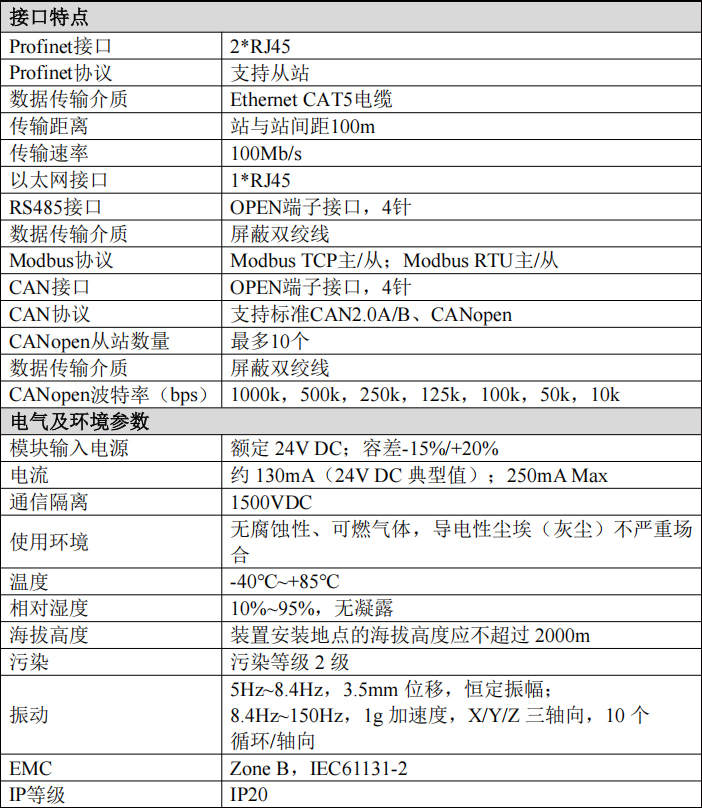 - (1)2個(gè)Profinet總線接口(RJ45),支持從站級聯(lián);