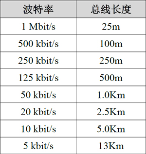 表3.1波特率與最大總線長(zhǎng)度參照表