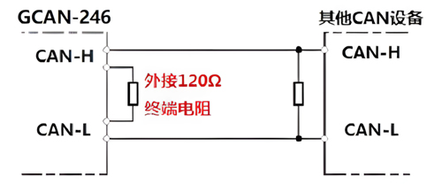 GCAN-GT-246模塊接入CAN總線時(shí)僅需要將CAN_H連CAN_H,CAN_L連CAN_L即可建立通信。