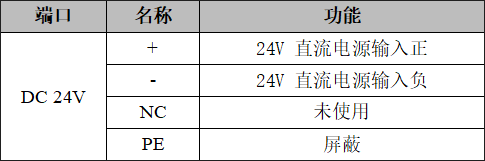 GCAN-GT-412模塊的電源接口由1個(gè)4 Pin插拔式接線端子引出,其接口定義如表所示。