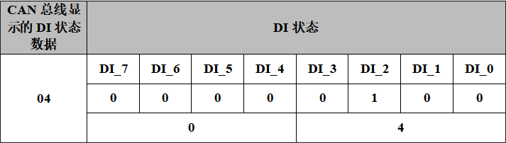 數(shù)字量輸入和數(shù)字量輸出的狀態(tài)均各由一個字節(jié)來表示,DI_7和DO_7在高位,DI_0和DO_0在低位。