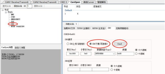 如圖所示,發(fā)送后可在ECANTools監(jiān)控界面中查看到NMT命令,且發(fā)送完NMT命令后,節(jié)點狀態(tài)變?yōu)?x05(操作狀態(tài))。