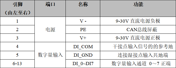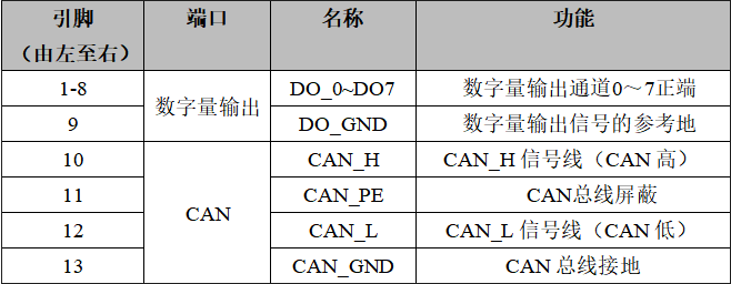 CAN-bus接口、8路開關(guān)量輸出接口定義