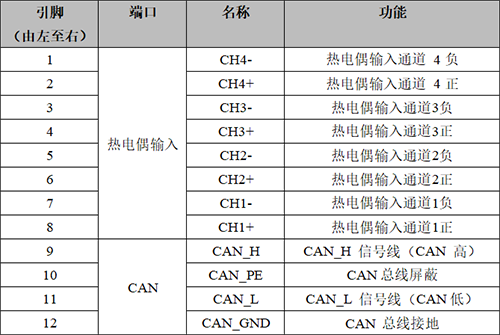 (11)熱電偶溫度采集接口、CANopen接口使用端子接口;