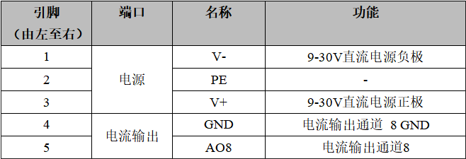 GCAN-4068模塊的電源接口、4路電流輸出接口正端、4路電流輸出接口負(fù)端接口位置如圖所示,接口定義如表所示。