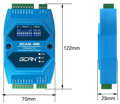 GCAN-4068型CANopen IO模塊8模擬量0-24mA輸出