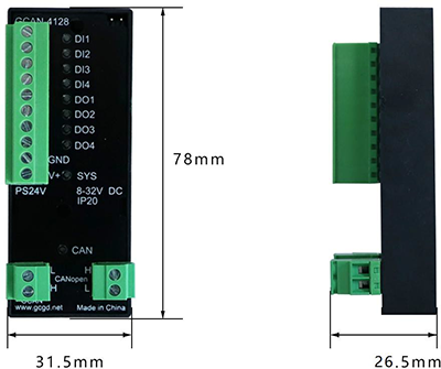 GCAN-4128型CANopen IO模塊4數(shù)字量輸入4數(shù)字量輸出