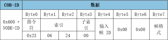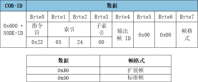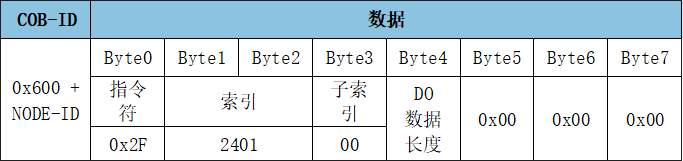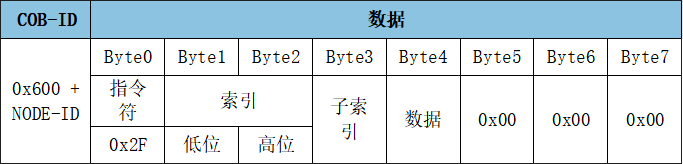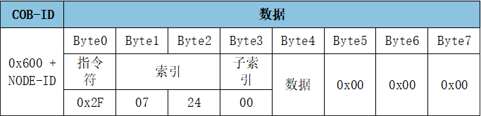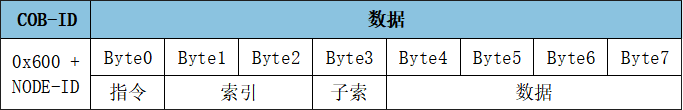 SDO寫入對(duì)象字典中數(shù)據(jù)類型的長(zhǎng)度為8位參數(shù)命令: