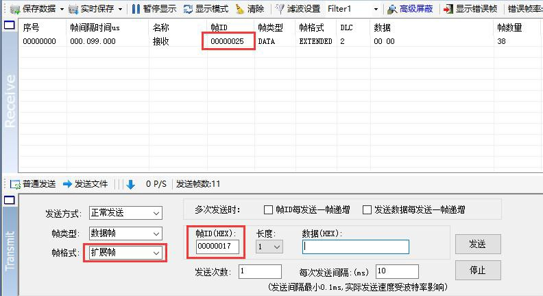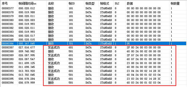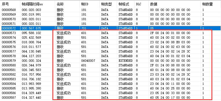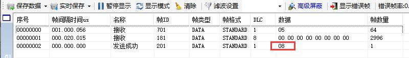 報(bào)文:ID:0x601數(shù)據(jù):2F 00 24 00 03 00 00 00,設(shè)置模塊為CAN模式。