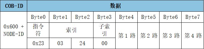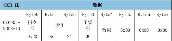 SDO寫入對(duì)象字典中數(shù)據(jù)類型的長(zhǎng)度為32位參數(shù)命令: