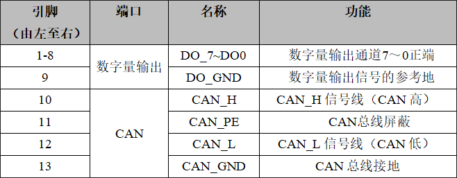 CAN-bus接口、8路開關(guān)量輸出接口定義
