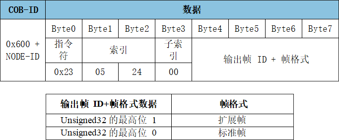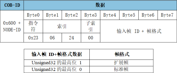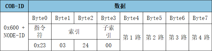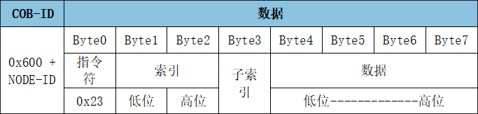 SDO寫入對(duì)象字典中數(shù)據(jù)類型的長(zhǎng)度為32位參數(shù)命令: