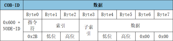 SDO寫入對(duì)象字典中數(shù)據(jù)類型的長(zhǎng)度為16位參數(shù)命令: