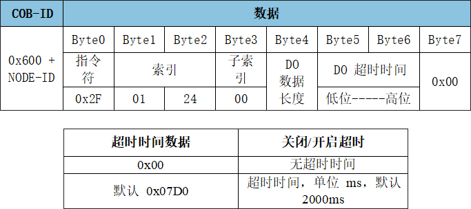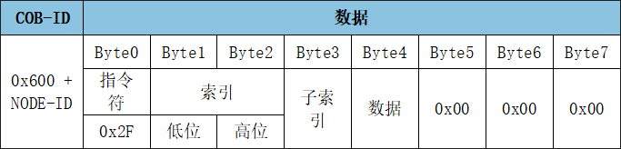 SDO寫入對(duì)象字典中數(shù)據(jù)類型的長(zhǎng)度為8位參數(shù)命令: