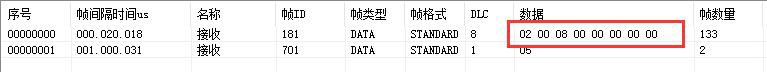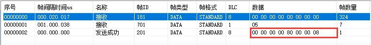 例如:默認(rèn)GCAN-4056的Node ID為1(以下節(jié)點(diǎn)號(hào)均為1),則主站設(shè)備可接收到一條節(jié)點(diǎn)狀態(tài)數(shù)據(jù),幀ID為0x701,標(biāo)準(zhǔn)幀,數(shù)據(jù)為0x05。