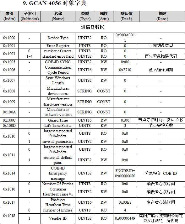 沈陽廣成科技GCAN-4056模塊的設(shè)備參數(shù)包括:
