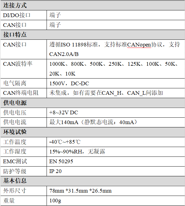 (3)CAN-bus接口采用電氣隔離,隔離模塊絕緣電壓:DC 1500V;