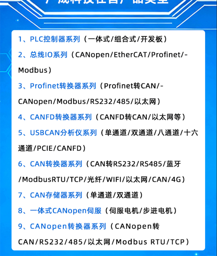 1、一體式PLC控制器系列2、組合式PLC控制器系列3、PLC開發(fā)板4、一體式總線IO耦合器5、組合式總線IO耦合器6、插片式IO擴展模塊