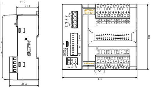 一、功能概述GCAN-4032遠(yuǎn)程IO是我公司基于CANopen總線自主研發(fā)的高性能總線同用遠(yuǎn)程IO模塊,為用戶(hù)節(jié)約成本,簡(jiǎn)化配線,提高系統(tǒng)可靠性,系統(tǒng)自帶16路DI和16路DO(輸出默認(rèn)晶體管PNP型,可選NPN型;輸入可通過(guò)接線切換源/漏型)。采用GCAN-4032模塊,用戶(hù)可用于采集數(shù)字量輸入信號(hào),并輸出數(shù)字量信號(hào),控制開(kāi)關(guān),實(shí)現(xiàn)遠(yuǎn)程開(kāi)關(guān)設(shè)備和CANopen網(wǎng)絡(luò)之間的連接,構(gòu)成CANopen網(wǎng)絡(luò)中數(shù)據(jù)量信號(hào)采集、輸出的控制節(jié)點(diǎn)。