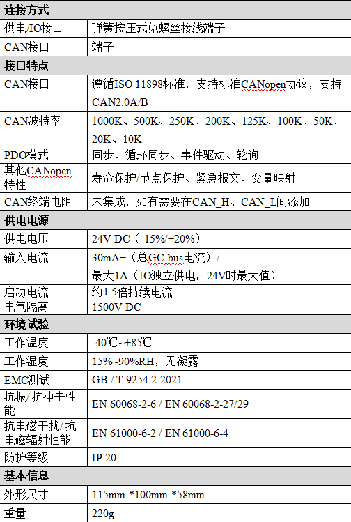 二、設(shè)備參數(shù)沈陽(yáng)廣成科技GCAN-4032一體式遠(yuǎn)程IO耦合器設(shè)備參數(shù)包括: