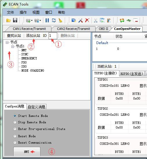 本章將使用廣成科技USBCAN-II Pro模塊及GCANTools軟件可以進(jìn)行CAN總線數(shù)據(jù)的接收與發(fā)送。軟件附帶的CANopen主站功能可以幫助調(diào)試CANopen從站,非常的方便實(shí)用。