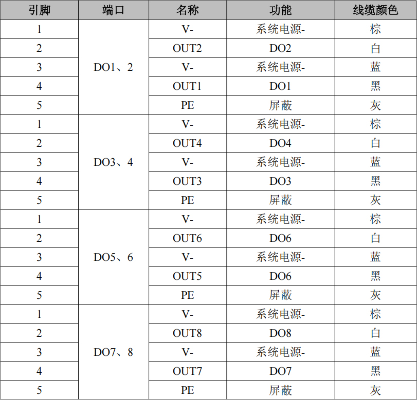 表2.2 GCAN-6057 CANopen模塊DO端子定義