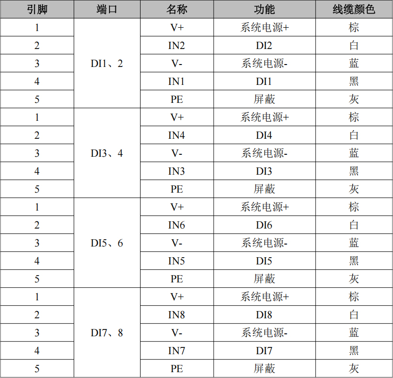 表2.3 GCAN-6057 CANopen模塊DI端子定義