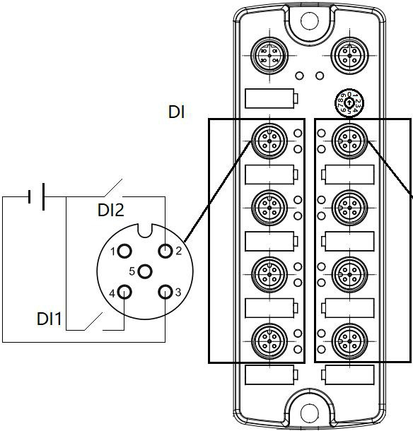 GCAN-6057的主控模塊IO含有左右兩排端子排,左側(cè)端子排為DI端子排,如圖所示。各個(gè)端子對(duì)應(yīng)的序號(hào)及其含義如表2.3所示。