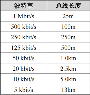 表3.1波特率與最大總線長(zhǎng)度參照表