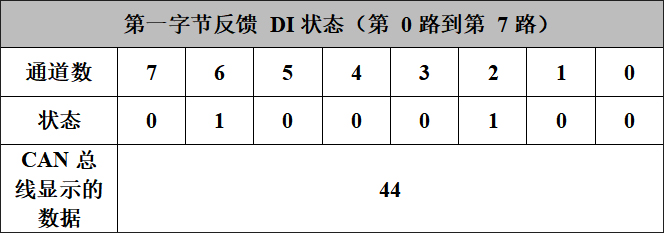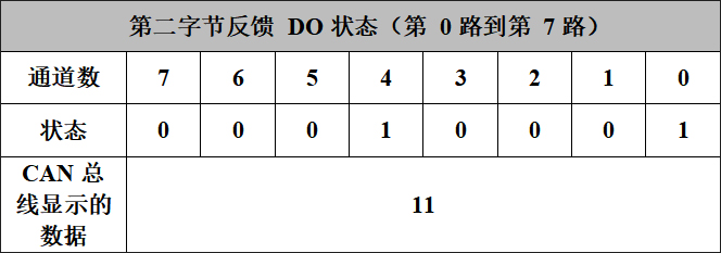 GCAN-6057模塊發(fā)出的TPDO數(shù)據(jù)幀ID為0x180+節(jié)點(diǎn)號(hào)(Node ID),數(shù)據(jù)長(zhǎng)度為2字節(jié),幀數(shù)據(jù)第1個(gè)字節(jié)即為該模塊數(shù)字量輸入狀態(tài),幀數(shù)據(jù)第2個(gè)字節(jié)為該模塊數(shù)字量輸出狀態(tài)。