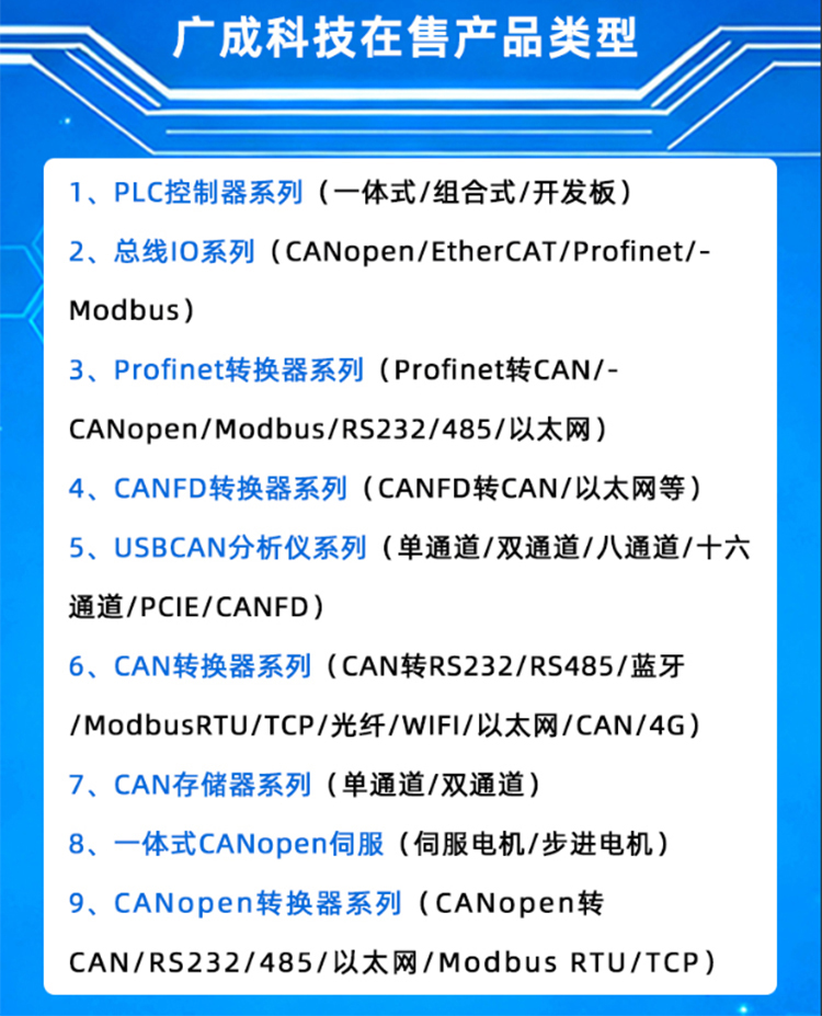 1、一體式PLC控制器系列2、組合式PLC控制器系列3、PLC開發(fā)板4、一體式總線IO耦合器5、組合式總線IO耦合器6、插片式IO擴(kuò)展模塊