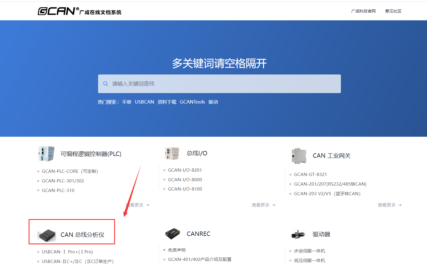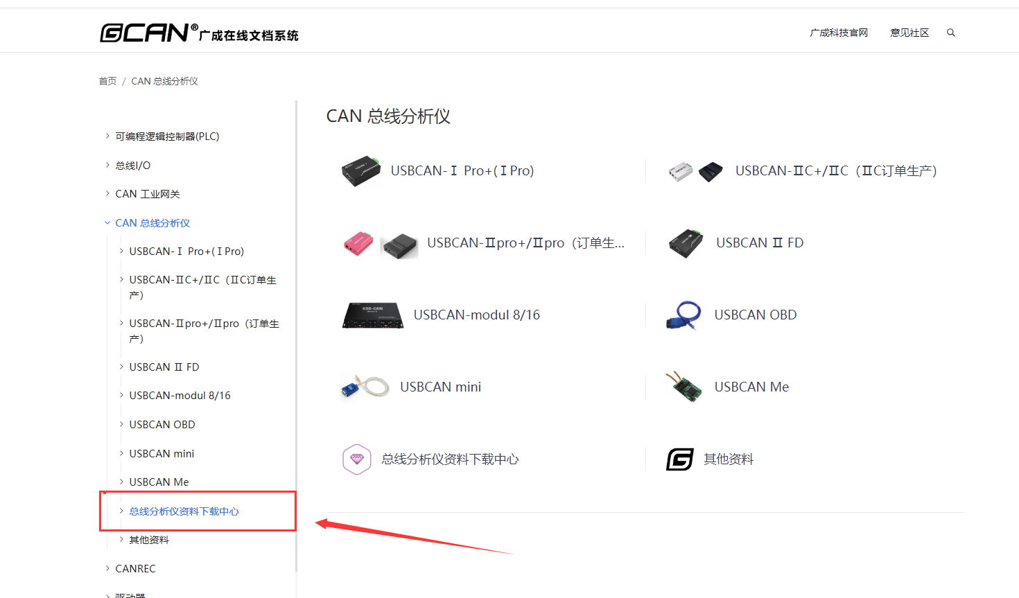 點擊“文檔系統(tǒng)”進入當(dāng)中,找到“CAN分析儀”選項,點擊進入