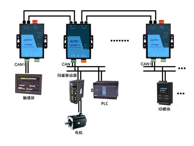 方法:在消防控制中心和各防火分區(qū)/設備間安裝CAN轉光纖模塊,通過光纖組網(wǎng)。