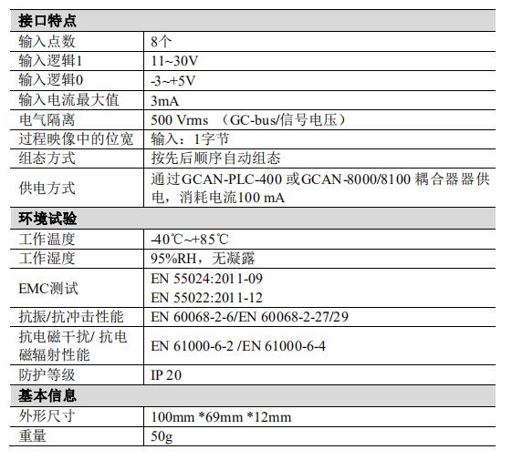 - GC-1008 模塊是集成 8 路數(shù)字量輸入通道的 I/O 模塊。該模塊可用于實時采集數(shù)字量信號, 并將采集到的數(shù)值通過內(nèi)部總線發(fā)送給 GCAN-PLC-400/510 或GCAN-IO-8000/8100 系列耦合器