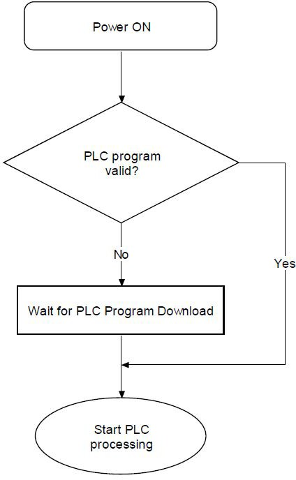 默認(rèn)情況下,GCAN-PLCcore-M7在上電或重啟時(shí)會(huì)加載所有必要的固件程序,之后會(huì)開始運(yùn)行PLC程序。因此,GCAN-PLCcore-M7適合使用于獨(dú)立型的控制系統(tǒng)。在電源崩潰的情況下,這樣的系統(tǒng)能夠恢復(fù)執(zhí)行PLC程序,而無(wú)需用戶干預(yù)。下圖演示了系統(tǒng)啟動(dòng)的細(xì)節(jié):
