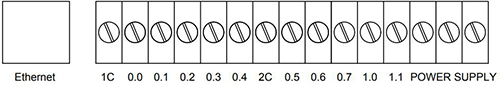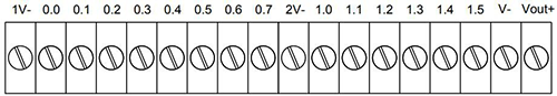 GCAN-PLC-324E/R系列的主控模塊含有一組模擬量接口接線端子排,如圖所示。