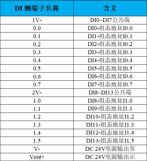 GCAN-PLC-324E/R系列的DI側(cè)端子排接口定義