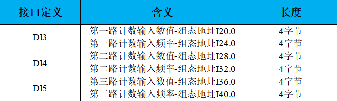 當(dāng)DI3~DI5作為高速計(jì)數(shù)輸入使用時,其組態(tài)地址如下表所示。