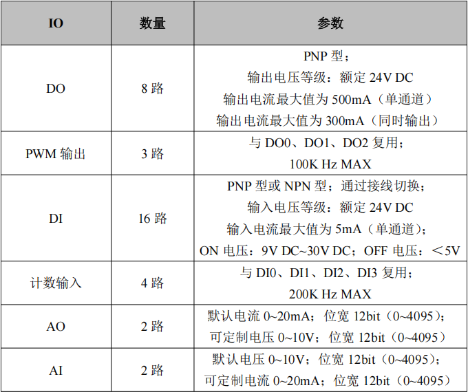 ● 8路DO(3路PWM脈沖輸出);16路DI(4路計數(shù)輸入);