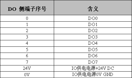 GCAN-PLC-230的主控模塊右側頂板含有上下四排端子排,下方兩排端子排的右側為DO端子排,分別為DO0~DO7共8個數(shù)字量輸出點,以及1組IO供電電源接口(IO供電電源已與系統(tǒng)電源隔離,IO模塊需供電后才能正常工作),如圖所示。各個端子對應的序號及其含義如下表所示。