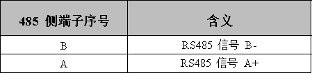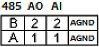 下方兩排端子排的左側為RS485、AI和AO端子排,如圖所示。RS485端子對應的序號及其含義如表所示: