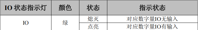 IO指示燈用來指示設備數(shù)字量IO的運行狀態(tài)(模擬量IO無指示燈)