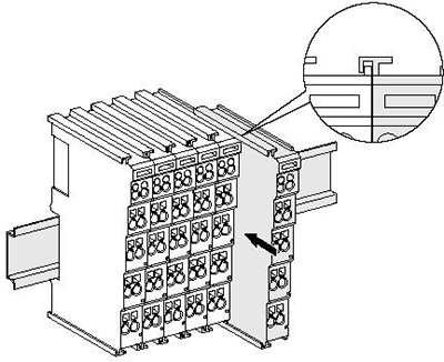 GCAN-PLC最多可以連接32個GC系列IO模塊。插入模塊時,一定要沿著凹槽,在已有模塊的右側順次插入,直到鎖扣卡死并發(fā)出“咔”的一聲。當您正確組裝節(jié)點時,在端子模塊之間不會存在明顯的縫隙。如果有一個模塊未被正確組裝,整個IO系統(tǒng)將不會正常運行。